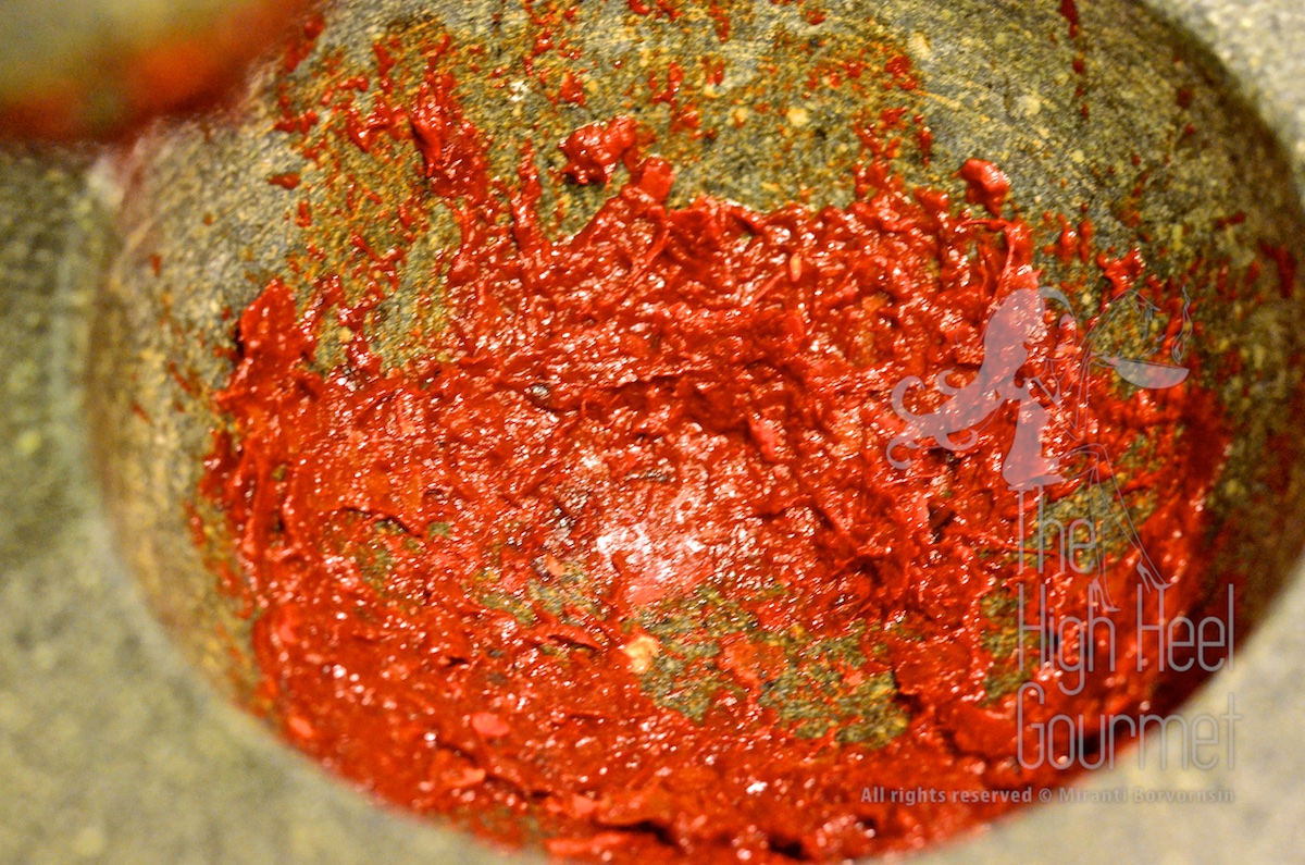 1) Start with the chilies and salt, put them in first and grind them until they become a fine paste.