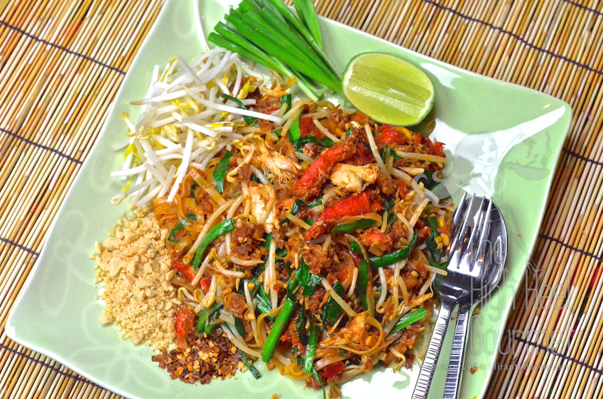 I personally don’t consider this dish PadThai, but everyone else, even the Thais, would, so I’m not going to go against the grain on this one. It uses fewer ingredients, so I’ll just assume that this is an “Easy PadThai” version. And it uses no egg. Also, you can substitute crab with shrimp, if you want. And if you add cracked peanuts you will get something so yummy and really close to authentic PadThai.